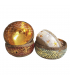 Bol portavela de coco tallado a mano, 10 cm aprox. Los modelos pueden variar según existencias.