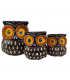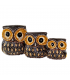 Juego de 3 búhos tallados en madera, medidas aproximadas 10,9,8 cm respectivamente.