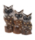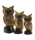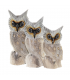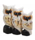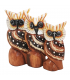 Juego 3 búhos tallados y pintados a mano, de 20,18,15 cm.